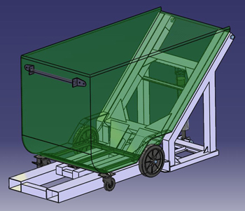 - Forklift tilting hopper bin.